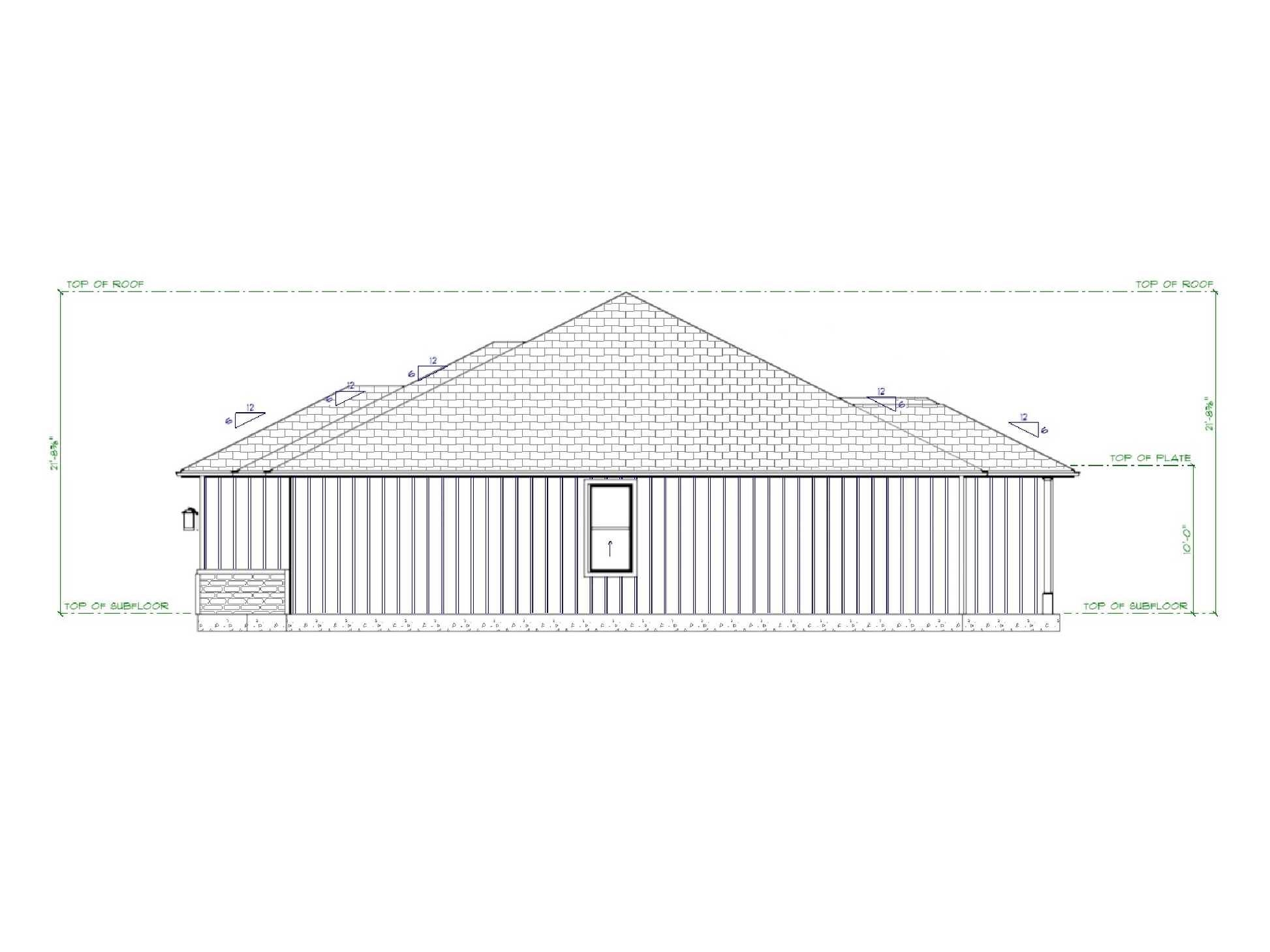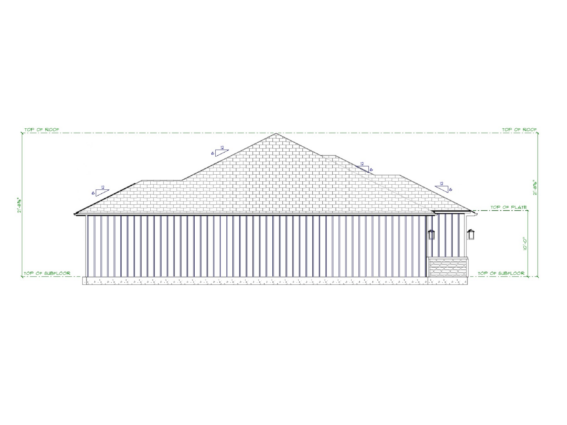 Each DAL Plan is delivered as a complete set of residential working drawings intended for construction. Plan sets include fully dimensioned floor plans, exterior elevations, a roof plan, and a foundation plan based on the selected foundation type.