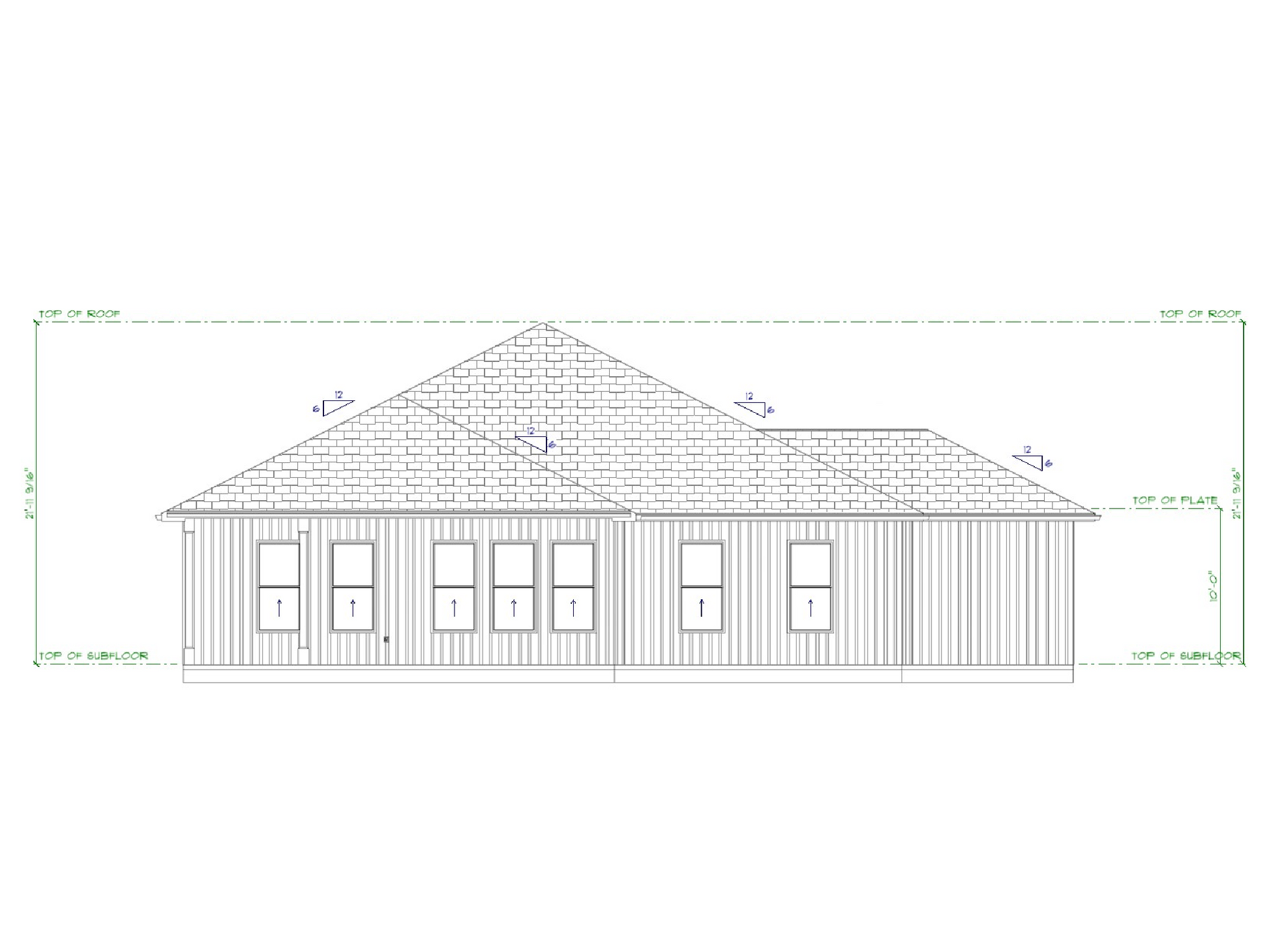Each DAL Plan is delivered as a complete set of residential working drawings intended for construction. Plan sets include fully dimensioned floor plans, exterior elevations, a roof plan, and a foundation plan based on the selected foundation type.